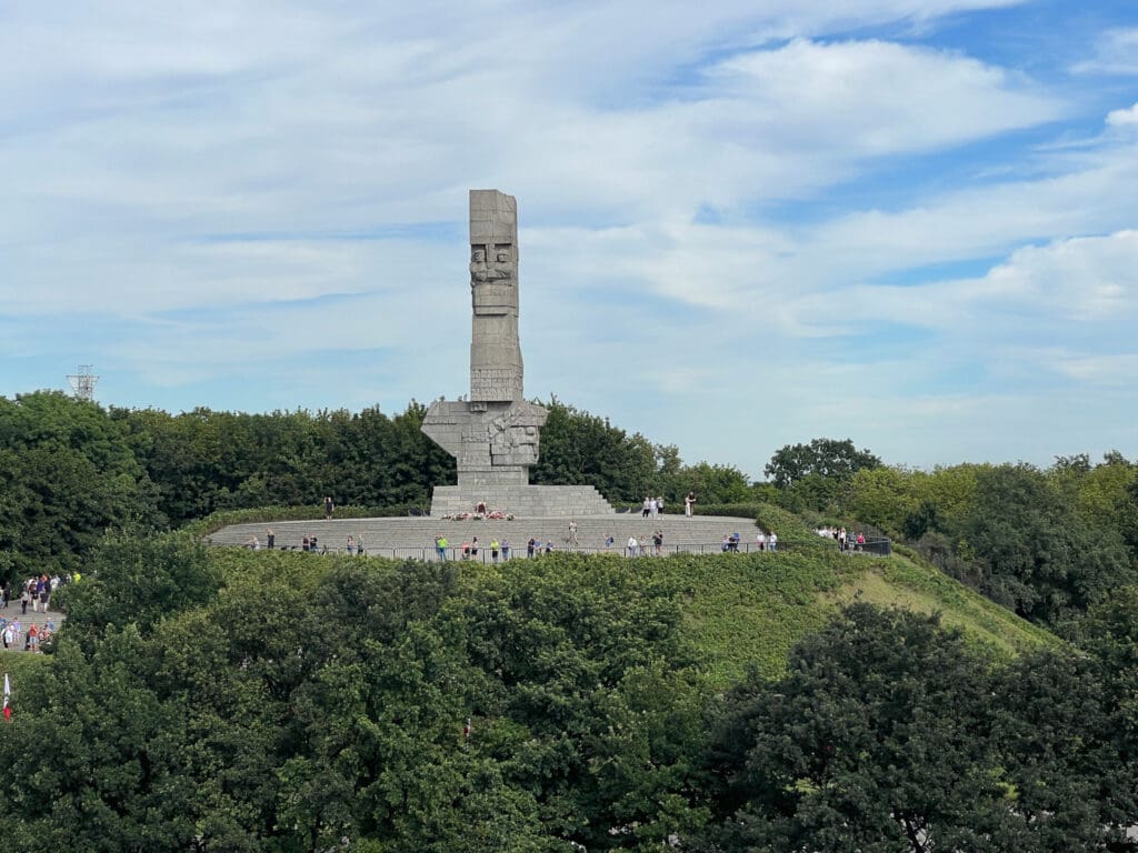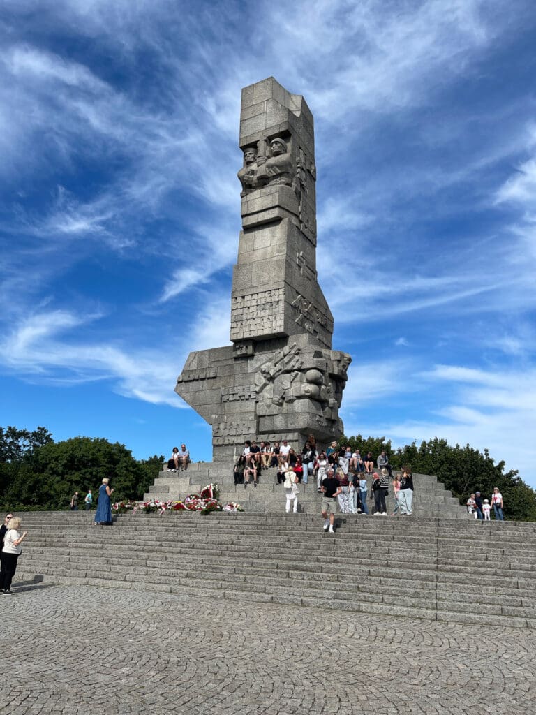 När fartyget backar mot sin kajplats passeras monumentet på Westerplatte. Det var där som krigshandlingarna i andra världskriget startade. Polen hade rätt att ha militära installationer på tysk mark eller snarare på Danzigs mark eftersom staden då hade ett självstyre. I sju dagar höll polackerna ut mot den överlägsna angriparen.
